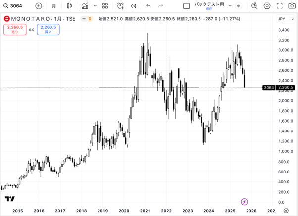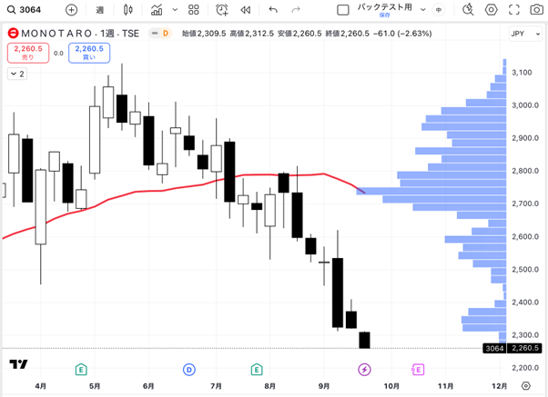 優良企業の代表格とも言える、MonotaRO(3064)が年初来安値を更新していたので注目しています。