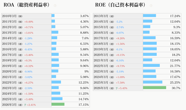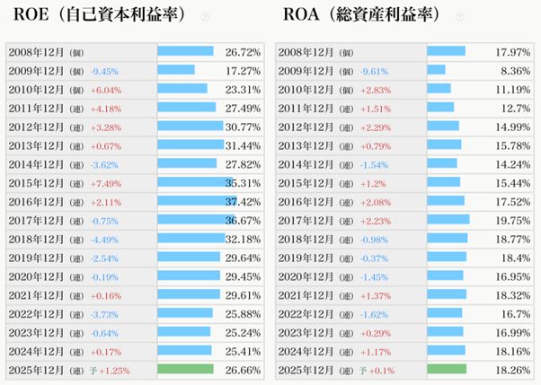 ROEとROAも一貫して高水準ですし、「よく作り込まれた会社だな〜」と思っています。惚れ惚れしちゃいますね。