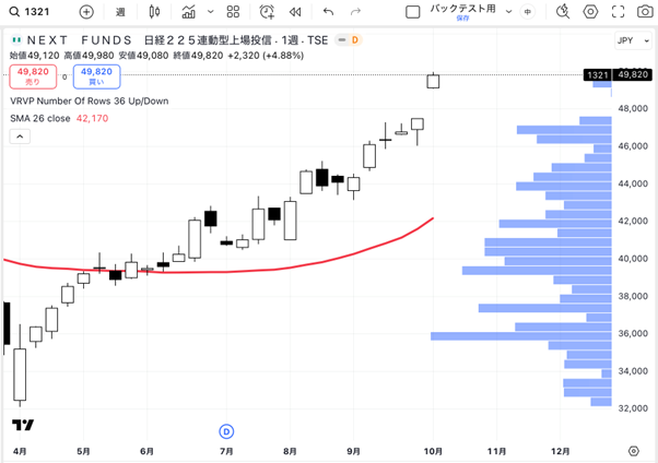 高市さんが総裁になってから、日経平均株価はアゲアゲで、年初来高値の位置にあります。需給としては「パーフェクト」で、しばらく強気相場が続きそうですね👀