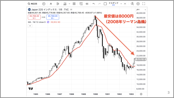 日経平均株価の長期チャートを見てみると、まだ高値圏にありますね。