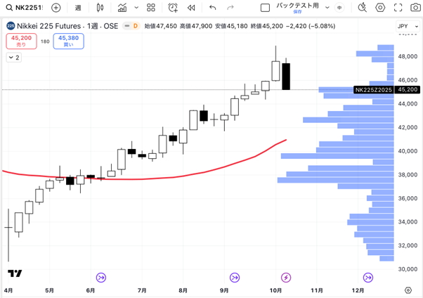 日経先物のチャートを見ればわかるように、特に高市さんが当選してからの上がり方は「スピードが早すぎる」感がありました。
