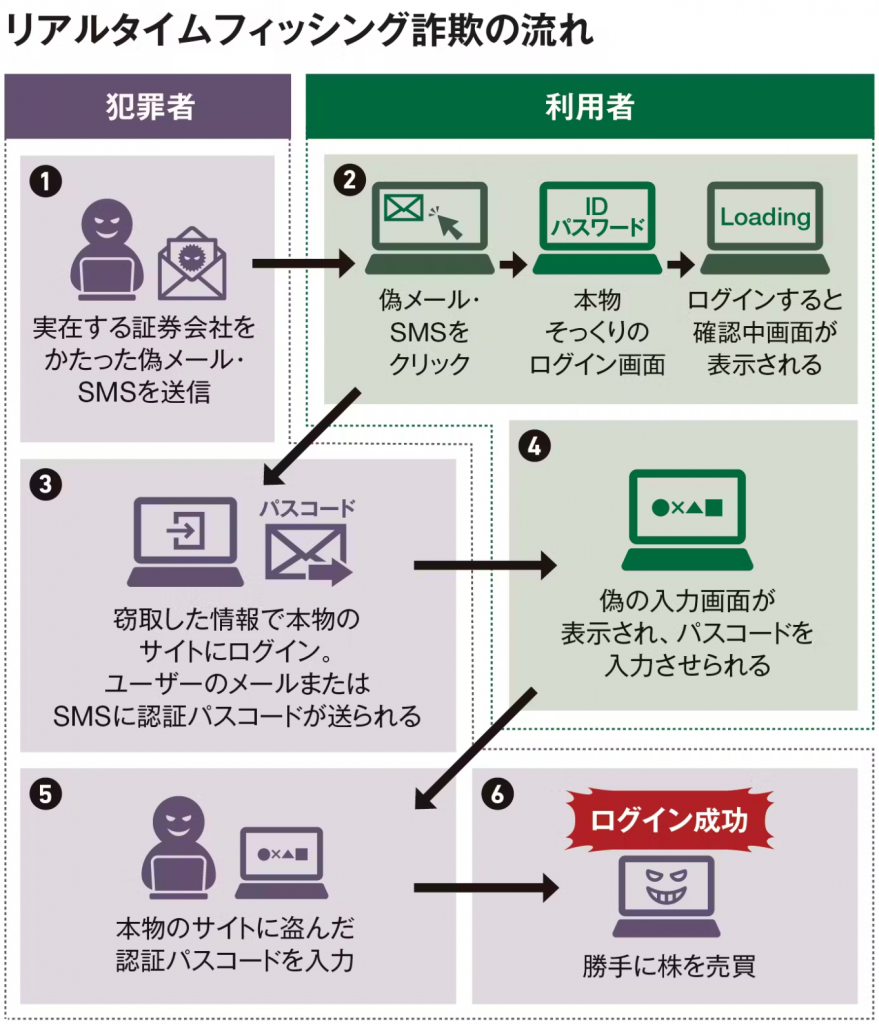 ここで新たに登場したのが、証券業界を標的にする「リアルタイム・フィッシング詐欺」です。