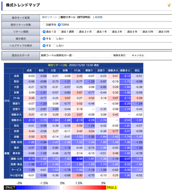 指数はアゲアゲですが[株式トレンドマップを見てみると、個別株は指数に大きく出遅れています。