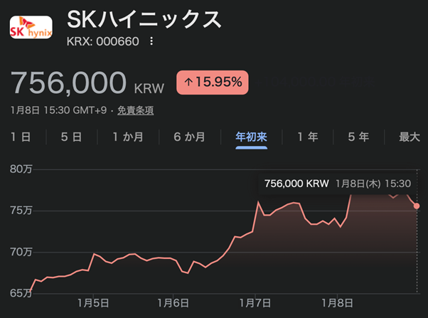 とある方が「2026年はメモリの年」と言っていましたが、ポートフォリオ最上位のSK Hynixが絶好調です🔥