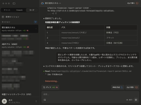 具体的には、開示資料を読む、重要事実を発見する、フォーマットに従ってレポートに追記する、という仕事をさせるわけですが、これをループさせるSKILLですね。